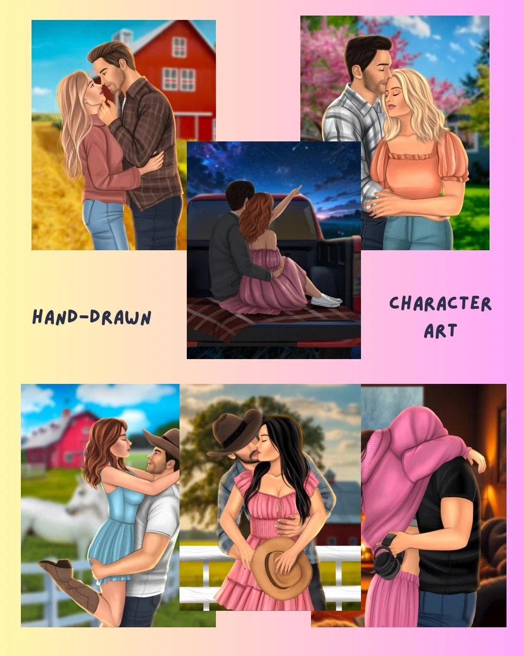 6x hand drawn character art (exclusive)